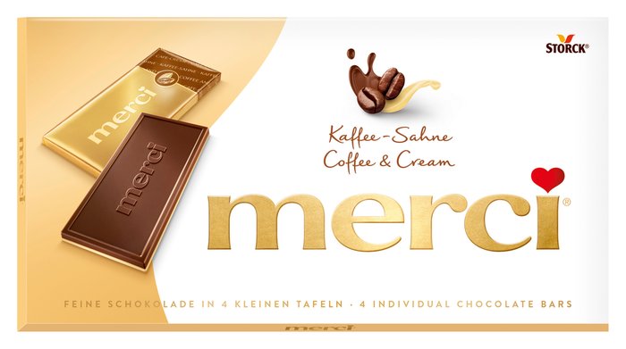 Die kleinen Kaffee-Sahne Tafeln von Merci sind zart schmelzend und aromatisch im Geschmack. Sie sind eine köstliche Nascherei zu Hause oder unterwegs.