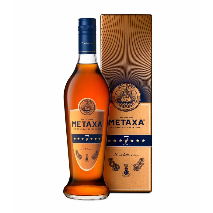 Verfeinerte Sanftheit METAXA 7 Stern ist eine länger gelagerte Variante aus der METAXA Sterne-Familie und setzt sich aus älteren, von den ägäischen Inseln kommenden Muskatellerweinen und aus Weindestillaten zusammen, die bis zu sieben Jahre in Eichenfässern reiften. Mit seiner goldgelben Farbe verströmt er feine Aromen von Muskateller sowie eine leichte Vanillenote, gefolgt von einem vollmundigen, ausgewogenen Geschmack. Kenner genießen den lieblichen Geschmack von METAXA 7 Stern am besten pur oder auf Eis.