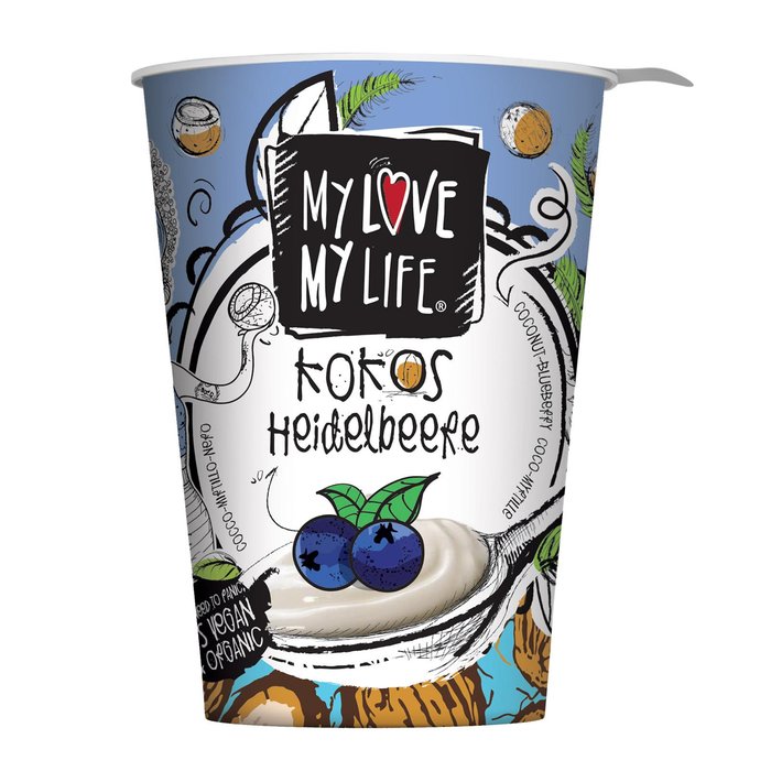 Kokosmilch leicht* 73% (Wasser, Kokosmark* 23%), Heidelbeeren* 11%, Zucker*, Stärke*, Stabilisator: Johannisbrotkernmehl*, Salz, Milchsäurekulturen *aus biologischer Landwirtschaft
