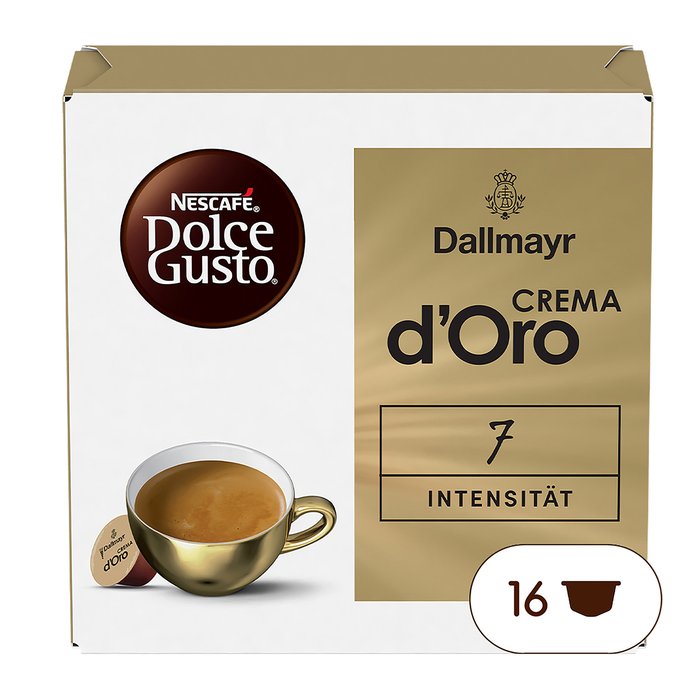 Jetzt gibt es das feine italienische Lebensgefühl auch in der NESCAFÉ Dolce Gusto Kapsel. Unser Dallmayr Crema d'Oro verwöhnt Sie mit einem vollmundigen Aroma, sorgfältig aufeinander abgestimmter Arabica-Hochlandbohnen und einer samtig feinen Crema.