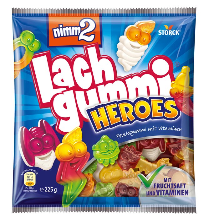 Die Lachgummi Heroes sind süße Superhelden mit fantasievollen Frucht-Gesichtern. Sie erfreuen in sechs Geschmacks-Richtungen und mit wertvollen Vitaminen.