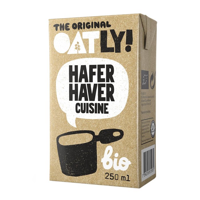 Wir haben eines unserer besten Produkte, das wir in Schweden produzieren, mit ausschließlich Bio Zutaten von Grund auf neu kreiert. Perfekt für alles, was du gerne kochst. Und die lediglich 3% an gesättigten Fettsäuren sind ein ausgesprochen niedriger Wert. Im Grunde genommen kannst du es einfach wie Sahne verwenden. Das bedeutet, dass dir Millionen von Möglichkeiten offen stehen, dieses Produkt einzusetzen. Vor allem erwähnenswert ist, dass es komplett Bio ist. Moment, das war noch nicht alles: Du kannst es auch bei Zimmertemperatur aufbewahren, d.h. dass du immer genügend im Haus haben kannst, ohne dass der Kühlschrank aus den Nähten platzt.
