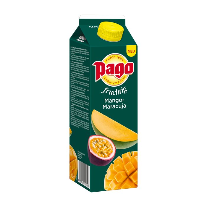 Mango-Maracujafruchtsaftgetränk mit Vitamin C. Fruchtgehalt: 21%.