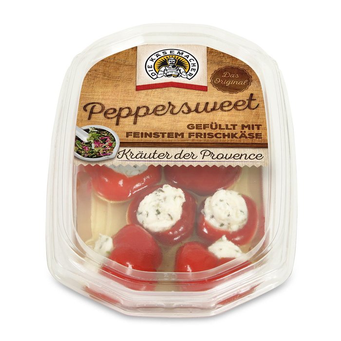 Der Peppersweet ist der Star im Antipasti-Bereich von DIE KÄSEMACHER. Die süßen, milden Paprika waren damals die ersten Früchte die mit einem Herz aus Käse gefüllt wurden. Nach einer achtsamen Reifung wird jede Frucht einzeln per Hand gepflückt, nur so kann ein schonender Ernteverlauf garantiert werden. Anschließend erhalten die Früchte ihr Herz aus feinstem Frischkäse. Der Peppersweet gefüllt mit Frischkäse und Kräutern der Provence ist eine Sortimentserweiterung zu unserem Klassiker und besticht vor allem durch sein mediterranes Aroma.