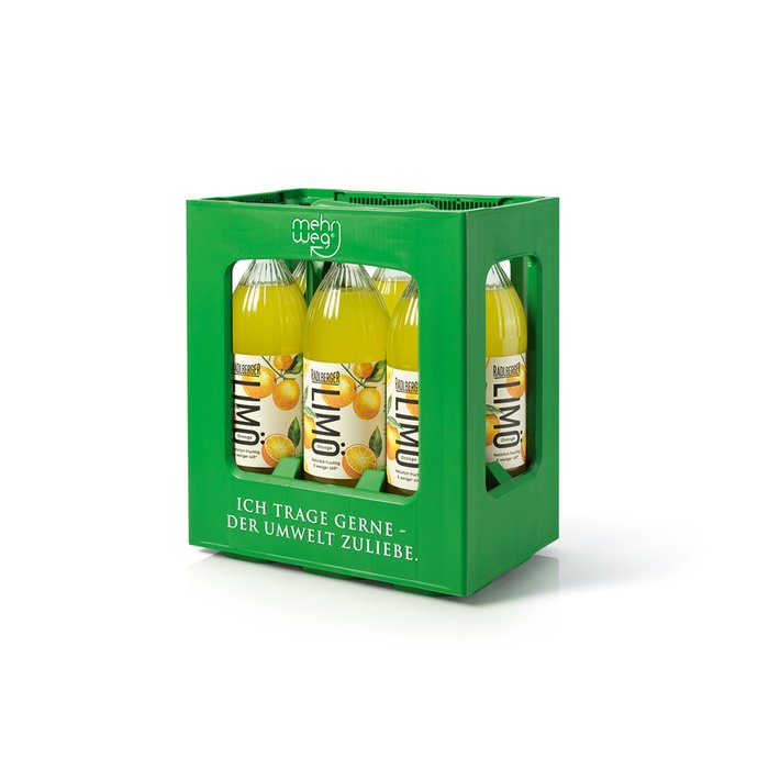 Zutaten: Wasser, 6% Orangensaft aus Orangensaftkonzentrat, Zucker, Kohlensäure, natürliches Orangen-Aroma mit anderen natürlichen Aromen, Säuerungsmittel Citronensäure, färbendes Karottenkonzentrat, Antioxidationsmittel Ascorbinsäure, Stabilisator: Pektine, Johannisbrotkernmehl; Orangenextrakt