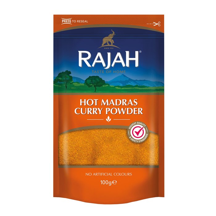 Zutaten: Koriander gemahlen, Kurkuma gemahlen, SENFPULVER, Chili gemahlen, Kichererbsen schwarz (Bengal Gram), Kreuzkümmel gemahlen, Bockshornklee gemahlen, Pfeffer schwarz gemahlen, Knoblauchpulver, jodiertes Salz, Fenchel gemahlen.