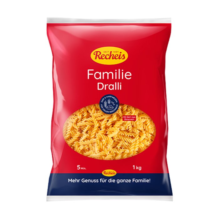 Nudeln in reichlich kochendes, gesalzenes Wasser geben (1 Liter/100 g Nudeln). Öfters umrühren. Nach ca. 5 Minuten sind die Nudeln bissfest gekocht. Dank der Zugabe von Eiern sind Recheis Nudeln auch nach etwas längerer Kochzeit ein Genuss.