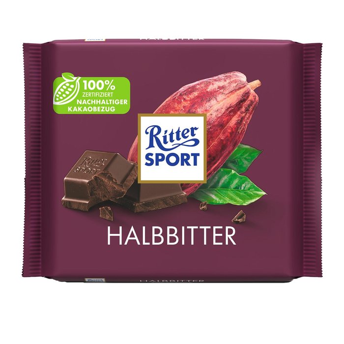 Halbbitter-Schokolade. Kakao: 50 % mindestens.