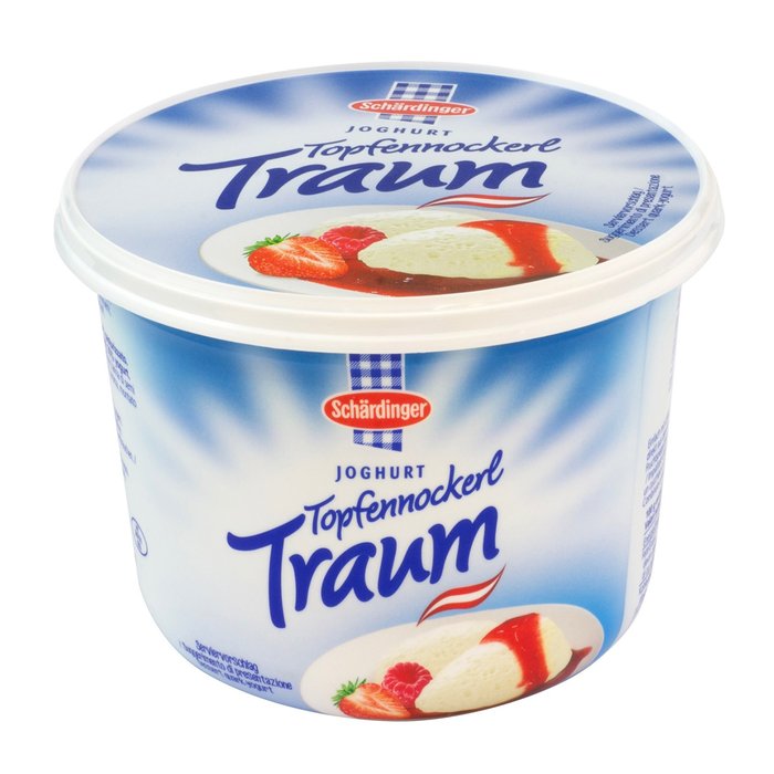 Zutaten: 52% TOPFEN, 35% JOGHURT, Zucker, Wasser, Gelatine, Stabilisatoren Pektin, Johannisbrotkernmehl; Säureregulator Citronensäure, Aroma, Stickstoff.
