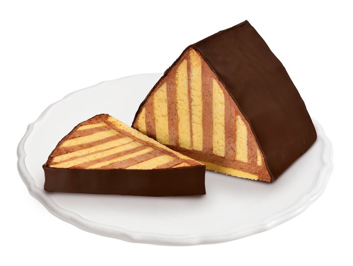 BUTTER, Wasser, Zucker, Kakaomasse, Kakaobutter 10%, WEIZENMEHL, EIGELB, HÜHNEREIEIWEIß, Maisstärke, modifizierte Stärke, MOLKENPULVER, Dextrose, Pflanzenfett gehärtet (Palm), MAGERMILCHPULVER, Verdickungsmittel E401, Stärkesirup, Stabilisator Xanthan, Aroma, Aroma, Speisesalz, Emulgatoren: E471, SOJALECITHINE; Rum, Gewürze, Farbstoffe E160b, E101.