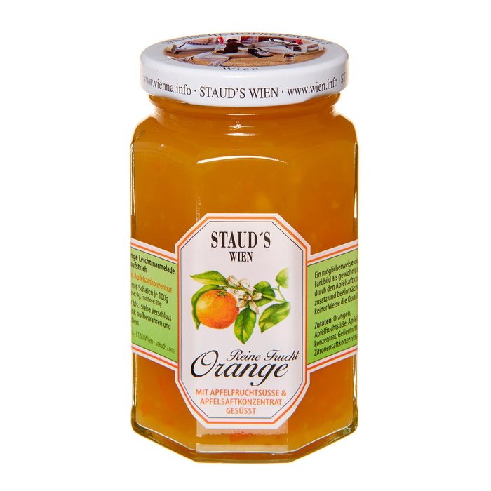Österreichische Spezialität Orange Leichtmarmelade D: Orange Fruchtaufstrich gesüßt mit Apfelfruchtsüße und Apfelsaftkonzentrat