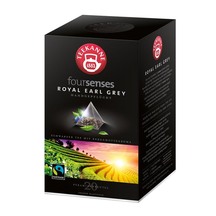 Der Foursenses Royal Earl Grey Tee von Teekanne ist handgepflückter und sorgfältig veredelter Earl Grey mit Bergamottearoma und erlesenen Kornblumenblüten.