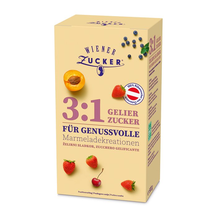 Trocken und bei Raumtemperatur lagern. Einkochtipps: Um Schäumen der Marmelade beim Kochen zu verhindern, 1-2 Tropfen pflanzliches Öl in die kalte Frucht-Zucker-Masse einrühren. Schaum kann auch während des Kochvorganges abgeschöpft werden. Für die Gelierprobe einige Tropfen auf einen kalten, glatten Teller geben. Wird die Probe beim Erkalten fest, ist die Marmelade fertig. Je Einkochvorgang nur eine Packung Gelierzucker verwenden.