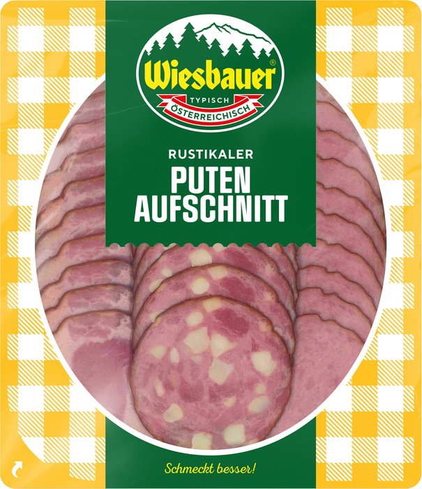 Rustikaler Putenaufschnitt -33% Puten-Beskada geräuchert, 33% Puten-Käsewurst geräuchert, 33% Reine Pute - Putenfleischwurst geräuchert