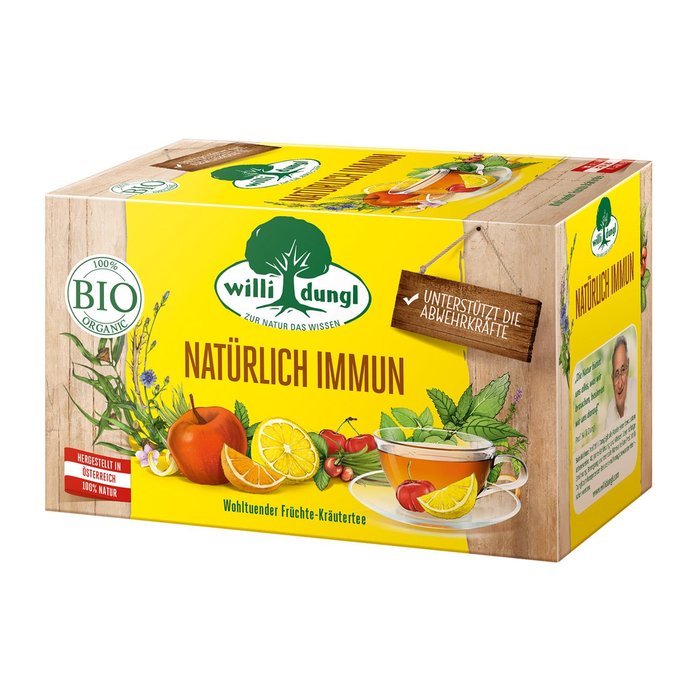 Wohltuender Früchte-Kräutertee der mit natürlichem Vitamin C aus der Acerolakirsche die körpereigenen Abwehrkräfte unterstützt.